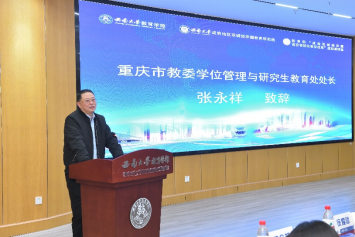 西南大学教育学部党委副书记刘娇、成渝地区双城经济圈教育研究院院长徐辉、重庆市教委学位管理与研究生教育处处长张永祥出席会议并致辞。