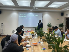 本次活动特别设置“人工智能与小学教育”学术研讨环节,中外教育同仁围绕人工智能与小学教育的机遇、挑战和策略展开深入交流。梅花山小学吴焕校长以《人工智能在小学体育课堂教学中的实践与探索》为主题,分享梅花山小学在人工智能技术赋能体育课堂,优化教学流程、提升教学实效方面的探索。泰国农磨兰威塔亚翁小学Mongkut Chamnongnit校长介绍人工智能在泰国小学教育中运用的实践,提出通过“智慧的脑”、“温暖的心”与“积极行动的手”,善用人工智能助手,守护每个孩子的健康成长。西南大学坦桑尼亚博士留学生代表Faustin Mwalyego则立足坦桑尼亚小学教育的实践,深刻反思人工智能带来的机遇与挑战,并提出通过多方合作促进人工智能时代小学教育的优质公平发展。参会各方坦诚交换观点、分享实践心得,热烈交流,形成诸多富有价值的教育共识。研讨活动既展现了梅花山小学在学部支持下的办学创新成果,也为基础教育阶段学校多方跨文化教育合作交流搭建了平台。
