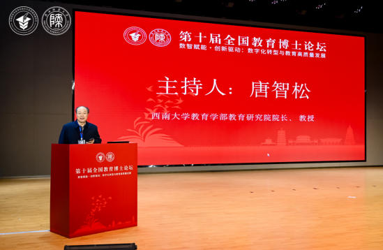 在论坛关键交流环节,唐智松教授围绕“教育博士培养”作专题发言。他结合西南大学教育博士培养工作的长期实践,系统介绍了学校在教育博士实践研究指导、培养过程优化和学位论文质量把关等环节的经验做法;同时针对当前教育博士培养中可能存在的流程衔接问题,提出“需动态关注培养流程核心要素与实际情况变化,以韧性机制主动发现并疏通培养堵点”的建议,得到参会同行的关注与认可。