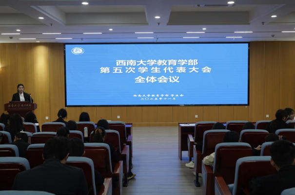 为深入学习党的二十大和二十届四中全会精神,贯彻落实学校相关工作部署,进一步加强学部学生组织建设,发挥好学校联系学生的桥梁和纽带作用,2025年11月11日,西南大学教育学部第五次学生代表大会隆重举行。