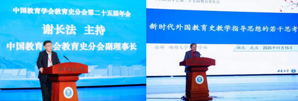 2025年11月14-16日,中国教育学会教育史分会第二十五届年会在华中师范大学隆重召开。本届教育史年会以“全球视野下的教育史研究”为主题,由华中师范大学教育学院承办。来自全国百余所高等院校、科研机构和学术期刊社的600余名专家、学者和研究生参会。西南大学教育学部谢长法教授、徐辉教授、彭泽平教授、冉春副教授与博士后闫雪映,教育史专业胡飞、郑思晴、韩旭帆、孙镭笑、郝悦5位博士生,以及付盈盈、罗浩、王山月、张文阳、潘虹余、张馨予、李欣一7位硕士生一同参会。