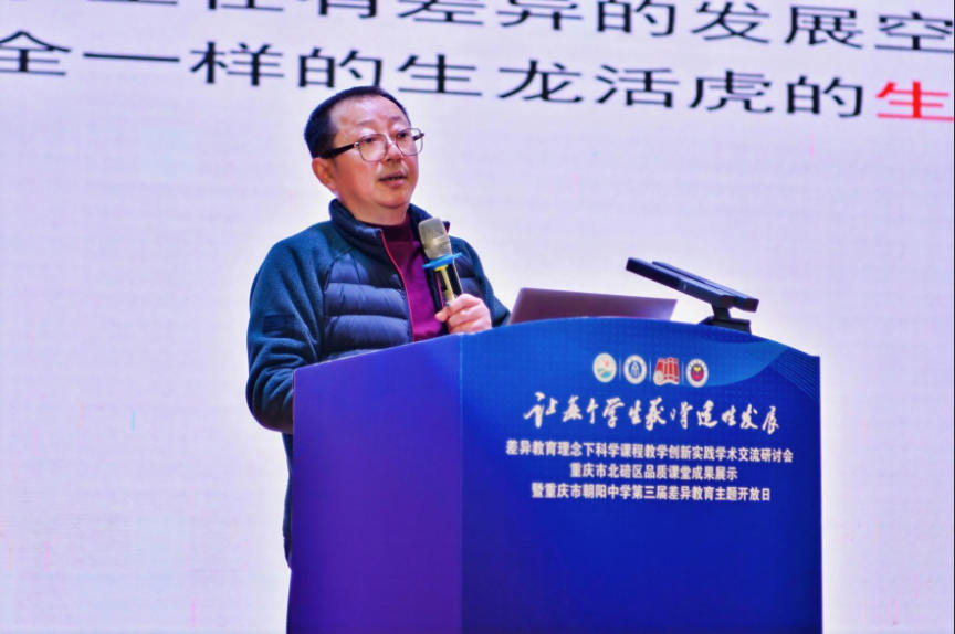 12月17日,由中国教育发展战略学会基础教育课程改革创新专业委员会、国家教材建设重点研究基地(西部职普融通教材研究)及重庆市北碚区教育委员会联合主办,西南大学教育学部与重庆市朝阳中学等单位共同承办的“差异教育理念下科学课程教学创新实践学术交流研讨会”在重庆市朝阳中学顺利举办。本次研讨会吸引了来自北京、上海、广东等17个省市的专家学者、教育工作者,以及重庆市区县代表500余人。会议围绕“做好科学教育加法”与“差异教育”两大主题,邀请北京、上海等地知名专家学者作专题报告,全国多所名校校长分享差异化科学教育实践经验,教学名师现场展示优质课例。通过主旨报告、专题分享、品质课堂展示、社团风采展演等多种形式,全方位展现了差异教育理念下科学教育的实践成效。