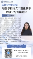 2026年1月5日晚,西南大学教育学部特殊教育学院成功举办线上专题学术讲座《从理论到实践:培智学校语文个别化教学的设计与实施路径》。本次讲座特邀上海市宝山区培智学校副校长、博士、高级教师吴筱雅担任主讲,由学部特殊教育学院江小英副教授主持,学院本科生、硕士生、学院老师及毕业学生60余人共同参与,学习气氛浓厚。