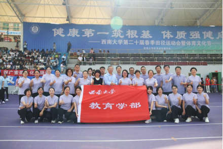2026年4月23日至24日,西南大学第二十届春季田径运动会暨体育文化节在第二运动场隆重举行。教育学部教工代表队以昂扬的精神面貌亮相赛场,在竞技与协作中展现教育工作者的别样风采,斩获教工组广播体操一等奖、教工组团体总分第七名,学生组广播体操也荣获二等奖,以优异成绩为教育学“双一流”学科建设再添亮色。