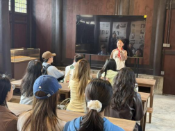 “即知即传,即教即学。”本次学习的一大亮点是育才学校“小先生”们的精彩讲解。小学生化身“小陶子”讲解员,自信地穿梭在旧址与纪念馆之间,熟练地向博士生党员们介绍陶爷爷的生平事迹与教育理念。陶先生首创的“小先生制”在今日的育才校园依然焕发着蓬勃生机。