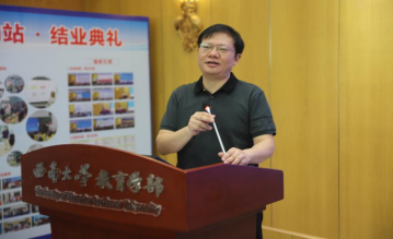 北碚区教委总督学彭建立在讲话中回顾了北碚区教委在北碚区政府的主导下,依托西南大学“智库“,通过校地深度合作,16年持续打造,让“高端人才流动站”成为北碚教育的一张名片的历程。肯定了高端人才流动站在培养区域教育领军人才的实践中,进行的一系列开创性探索,取得的丰硕的成果:一是形成了有鲜明北碚特色的高端人才培训模式;二是培养了70余名高素质教育专业人才;三是形成具有标志性的学术研究成果。他阐述近年来,在区委、区政府的领导下,区教委始终将教师队伍作为基础性、战略性工程来抓,不断深化校地合作,实施教育人才培养“一二三”行动计划,打造一个高端人才流动站,建设名师、名校长两类工作室,实施教育人才“百名培优”“百名卓越”“百名领军”三百工程,一体化推进教育人才的选、育、管、用,优化国家、市、区、校四级教师培训模式,努力打造一支师德高尚、业务精湛、结构合理、充满活力的高素质专业化创新型教师队伍。作为区域教育行政部门,彭督学表示下一步工作思路:一是进一步加强校地合作,打造具有北碚特色的人才培训体系。二是北碚基础教育领域能出教育名师,出杰出的学校管理者,更要出教育大家。三是争取再一次获得国家基础教育优秀教学成果奖。最后,彭督学希望学员们在今后的教育道路上,继续保持这份初心与热情,不断学习、不断探索、不断创新。以今天的结业作为新的起点,进一步开展教育教学实践研究,为北碚区教育事业的发展贡献更大的力量。