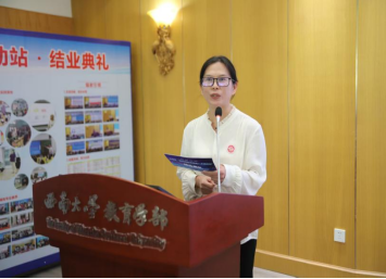 重庆北碚区王朴中学党委书记李忠良作为送培养单位负责人代表,以《在红色沃土中耕耘,于高端平台上绽放》为题,讲述了学校两位教师曹选成、王继生先后进入流动站学习,在导师们的专业引领下,将教育家精神与学校红色文化深度融合,发挥了流动站教师的辐射引领作用,促进了全校教师整体素养的提升,表达了对北碚区教委、区教师进修学院、西南大学教育学部的诚挚感谢。