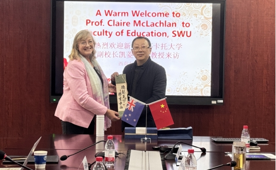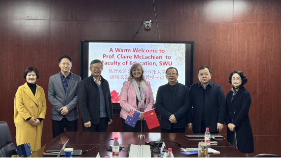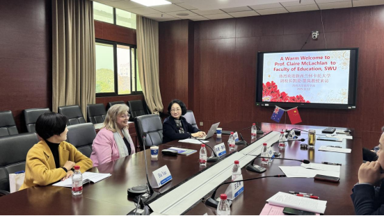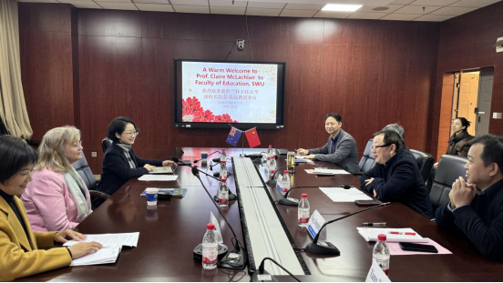 2025年12月12日,新西兰怀卡托大学副校长,新西兰学前教育杰出专家Claire McLachlan教授到访西南大学教育学部。双方围绕深化教育合作、推进科研协同、拓展人才培养路径等议题举行深入座谈。教育学部部长朱德全教授、党委书记周文全教授、副部长王正青教授、钟婉娟副教授及教育学部国际中心戴华鹏主任等出席座谈会,座谈会由戴华鹏主任主持。